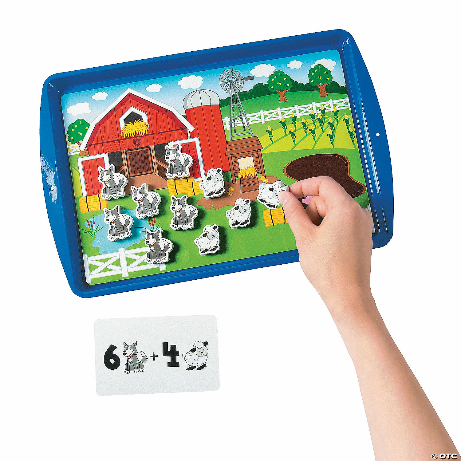 Add this farm-themed, self-correcting set to your classroom supplies to use in math centers as an activity for early learning math practice. Place these boards on the magnetic Kidboardβ’ (13762259), sold separately, to explore essential addition and math building concepts. Includes one 12 1/2″ x 8 1/2″ mat along with eighty-two 3 1/2″ x 5 1/2″ cards and seventy-two 1″ – 1 1/2″ magnets. Vinyl and cardstock. (155 pcs. per unit) Β© OTC