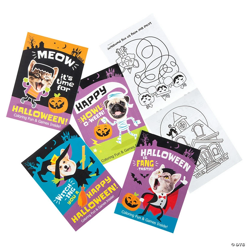 Celebrate this spooky season like never before with these Halloween coloring books. Complete with 6 pages of frightful fun, these coloring books also feature seasonal jokes, ghoulish games, and more! Hand these activity pads out to trick-or-treaters or slip them into party favor bags at a classroom celebration. Assorted. Paper. (6 dozen per unit) 5″ x 7″ Each book has 6 pages. © OTC