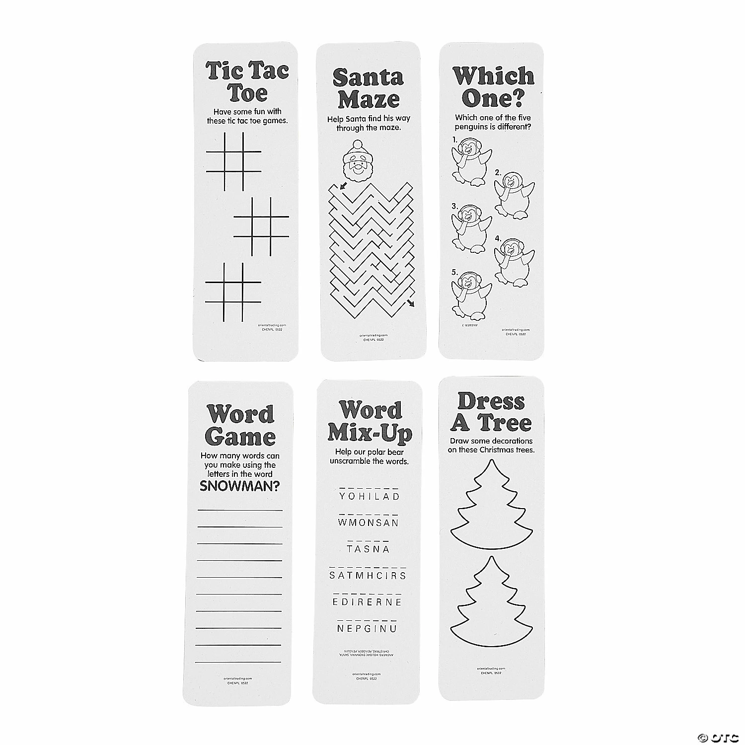 These holiday bookmarks make great Christmas party favors for classroom parties and fun stocking stuffer ideas, too. Each prismatic design has a fun activity on the back, making these kids’ bookmarks an entertaining way to save your space in a story. Cardstock. (2 dozen per unit) 2″ x 6″ with satin ribbon. © OTC