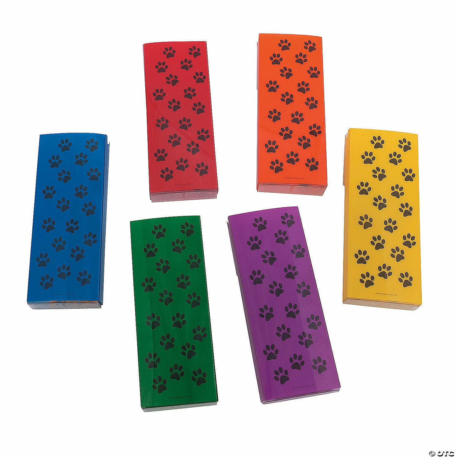 Pack your pencils in paw-some style! A must-have addition to classroom supplies, these fun pencil boxes come in six colorful options, each printed with a black design of tiny paw prints. Students will love these cases to help keep pencils, highlighters and pens organized. This vibrant set is perfect for classroom rewards and beginning of the year essentials. Each with a snap closure. No color choice available; colors will be random. Plastic. 3″ x 1″ x 7 3/4″ © OTC