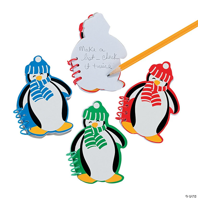 Penguin Spiral Notebooks. These chilly penguin pals are dressed for winter weather! Give these festive memo pads to all your holiday party guests for a great way to keep track of reminders and yuletide wish lists. These paper notebooks also make cute Christmas stocking stuffers! 3 3/4″ 35 pgs. ยฉ OTC