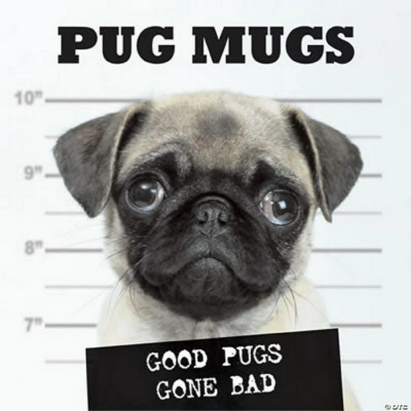 They may be small, round and sweet, but the mugs on these pugs can’t always be believed. Hidden beneath the big eyes and innocent-looking faces often lurks a pug who has waddled to the wrong side of the tracks. Petty theft, bribery, fraud, vandalism, even lewd and lascivious behavior are well documented in the mug shots of these pugs caught in the act of their pernicious crimes. Humorous? Yes. Funny? Not if you believe that pugs should be a little more decorous than this unruly bunch.